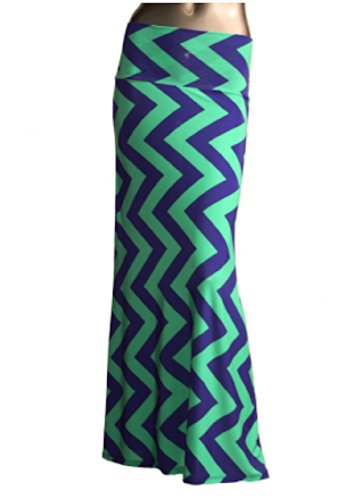 Women's Poly Span Multi-color Chevron Print Maxi Skirt (M, Navy & Jade-B86)ASIN : B00KGQKR2Y