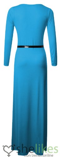 NEW WOMENS LADIES LONG SLEEVE JERSEY BELTED LONG MAXI DRESS TOP SKIRT [Turquoise,UK 8/10 AUS 10/12 US 4/6]ASIN : B00EV2M4CU
