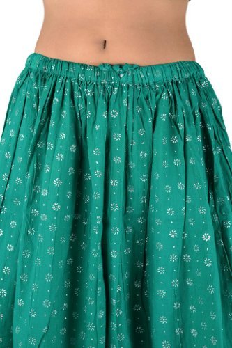 Women New Long Skirt Cotton Maxi Elastic Floral Lace Work Green ColoredASIN : B00DVKR0LS