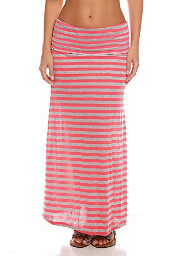 Young Aloud STRIPES ELASTIC WAIST LONG MAXI SKIRT grey-fuchsia MASIN : B00IT5OK4A