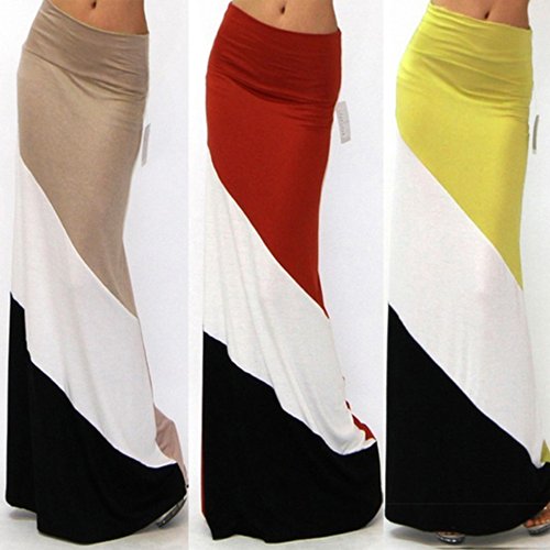 Zeagoo Women's Summer Color Blocked Striped Chevron Maxi Long Beach skirt Dress Khaki MASIN : B00KM596J4