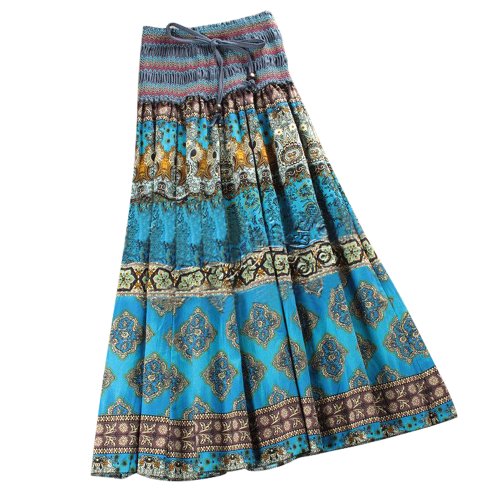 Dawdyfu Women's Bohemian Maxi Silk Connect Color Striped Long Skirt Ballet Dress (blue)ASIN : B00KGOOBKK
