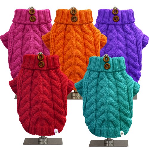 Description : This trendy urban style sweater will keep your pooch warm and cozy during the cool days. Our soft cable knit sweater features a turtleneck with unique button detail, a perfect addition to a chic wardrobe. This must-have sweater is available in five (5) vibrant colors.