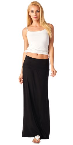 Popana Super Soft Fold Over Maxi Skirt Small in Black - Made In USAASIN : B00DNSQPKK