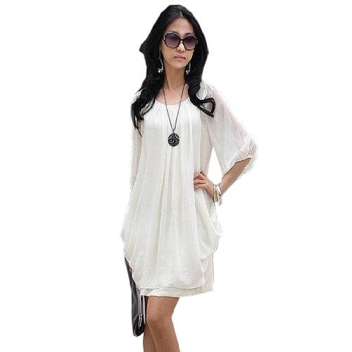 Hot Women Korean Loose Chffion Long Sleeve Party Casual Blouse Dresses Plus Size,X-Large,WhiteASIN : B00E5ZVBQ8